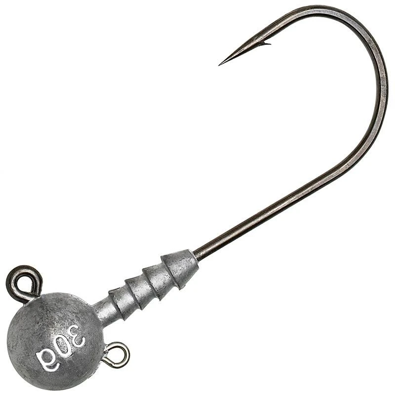 Têtes plombées X-Strong ultra piquantes, en acier forgé japonais. Gamme de têtes rondes moulées avec précision, avec des tailles adaptées à une large variété de leurres souples. Les petites tailles #1 à #3/0, avec petit crochet de fixation, pour ne pas abîmer le corps du leurre souple. Plus grosses tailles avec ergot de maintien et oeillet ventral pour stinger.
